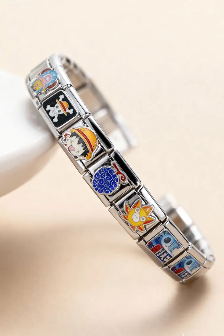 Carry the adventure on your wrist. This stainless steel bracelet features vibrant, enamel-painted charms including the iconic Jolly Roger, Luffy’s straw hat, and other beloved symbols from the One Piece universe. Durable, adjustable, and perfect for everyday wear.